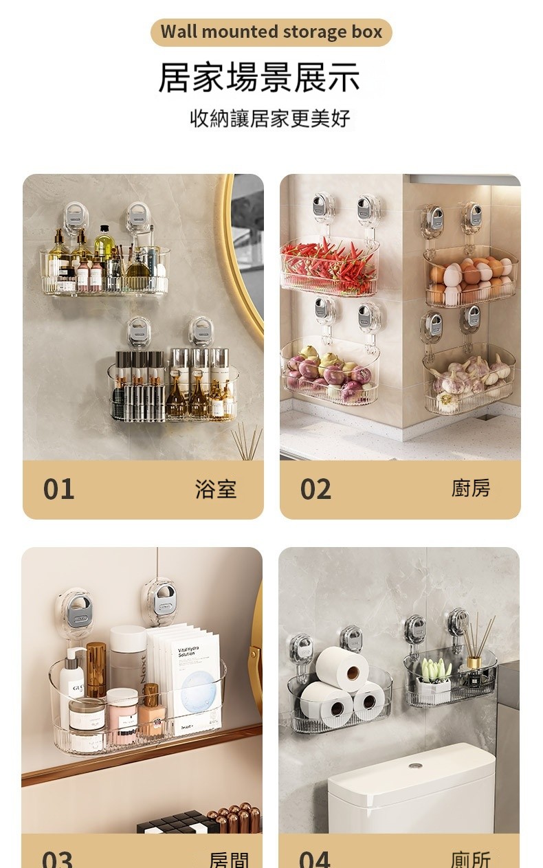 5分鐘前【免打孔吸盤置物架】免鑽孔不傷牆!隨心換位不留痕!乾淨整潔收納無拘束! - 【虧本特價】四入組 - NT$1280(均價320/入)